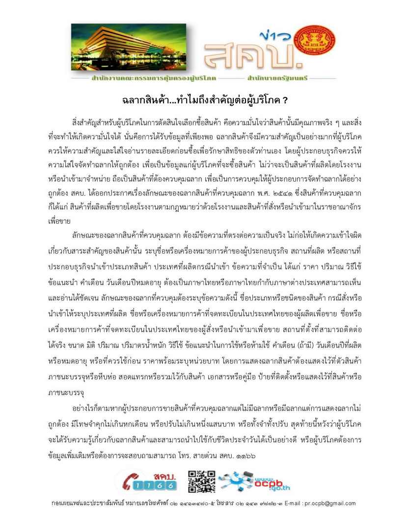 ประชาสัมพันธ์ : ข้อมูลข่าวสารด้านการคุ้มครองผู้บริโภค