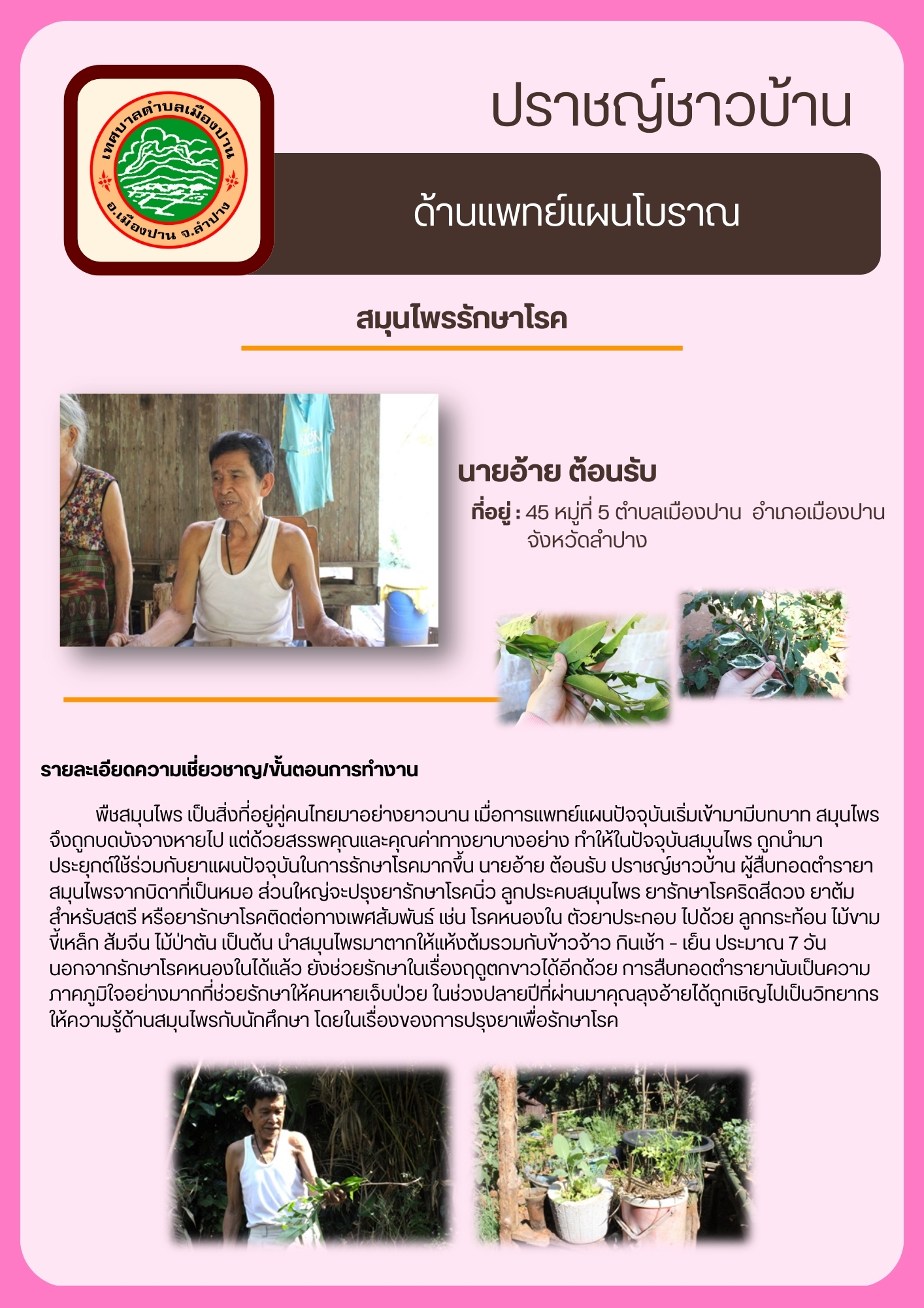 เลขที่ ๔๔๖ หมู่ ๔ ต.เมืองปาน