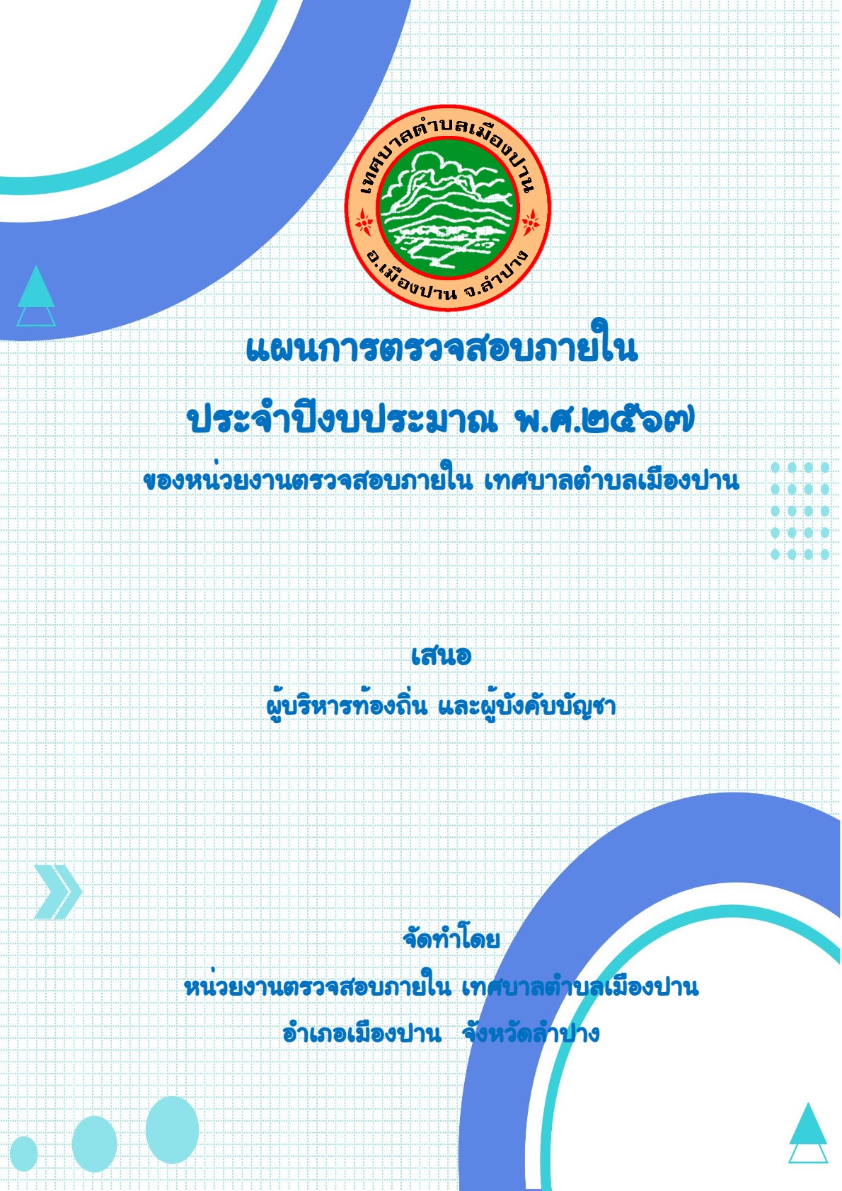 แผนการตรวจสอบภายใน ประจำปีงบประมาณ พ.ศ.๒๕๖๗ ของหนวยงานตรวจสอบภายใน เทศบาลตำบลเมืองปาน