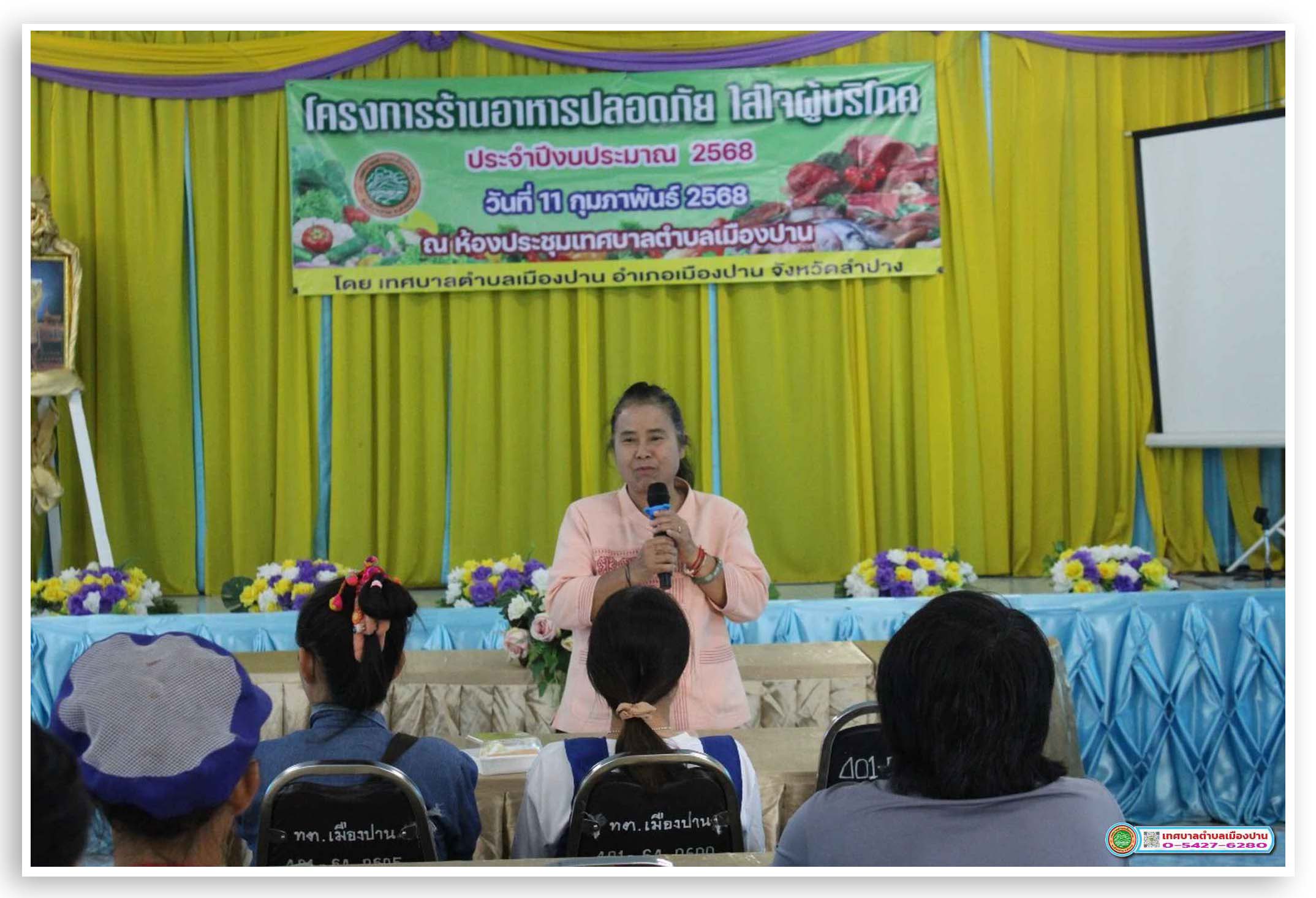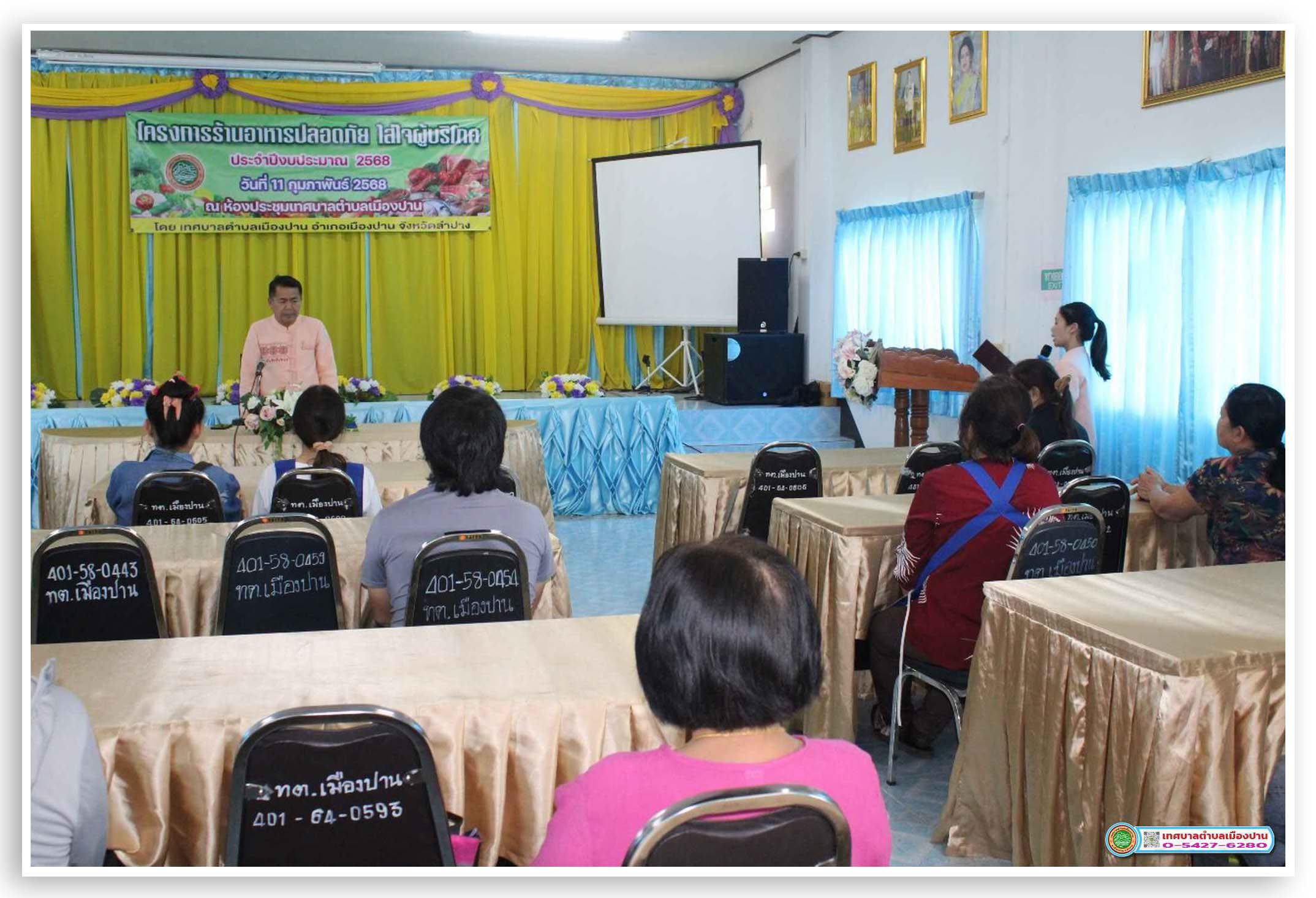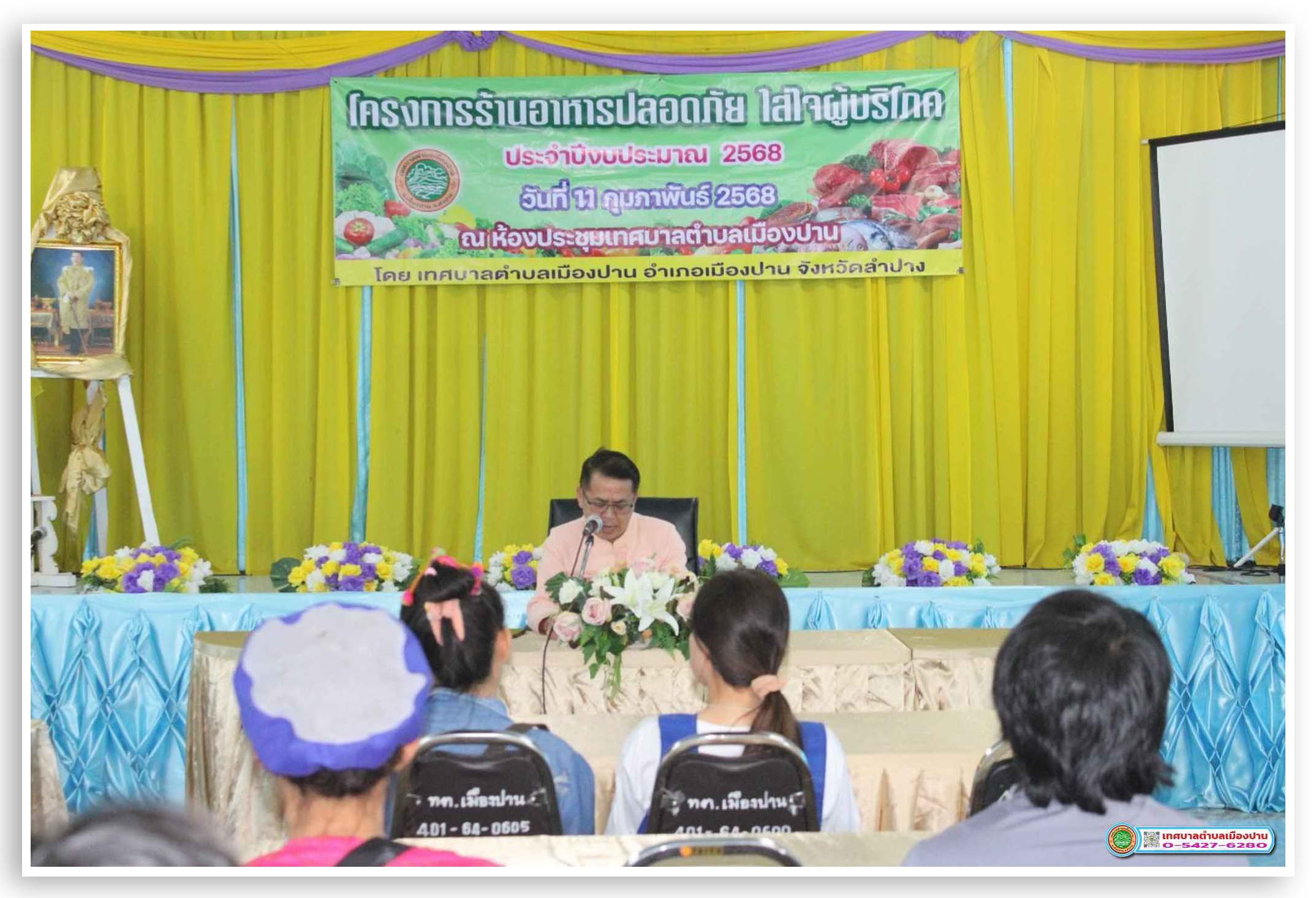 🔸 วันที่ 11 กุมภาพันธ์ 2568 งานสาธารณสุข เทศบาลตำบลเมืองปาน จัดโครงการร้านอาหารปลอดภัย ใส่ใจผู้บริโภค ประจำปีงบประมาณ 2568 โดยมี นายประสิทธิ์ จำเดิม นายกเทศมนตรีตำบลเมืองปาน เป็นประธานในพิธีเปิดโครงการฯ และนางสาวสาวิตรี นันตะกูล เจ้าพนักงานสาธารณสุข เป็นผู้กล่าวรายงาน ซึ่งเป็นโครงการที่ให้ความรู้แก่ผู้ประกอบการร้านค้าและผู้สัมผัสอาหารในพื้นที่ตำบลเมืองปาน ในด้านสุขลักษณะการปรุงและประกอบอาหารที่ถูกต้อง ณ ห้องประชุมเทศบาลตำบลเมืองปาน 🔸