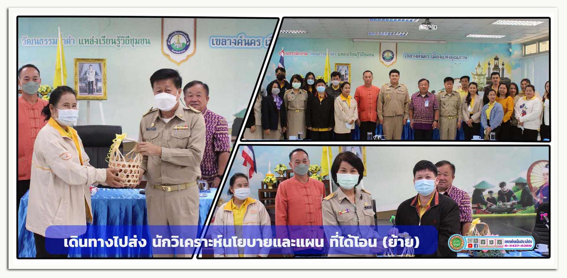 🎗 วันที่ 16 มกราคม 2566 นายประสิทธิ์ จำเดิม นายกเทศมนตรีตำบลเมืองปาน มอบหมายให้ นายสมควร อุดหนุน รองนายกเทศมนตรีตำบลเมืองปาน ร่วมกับ ปลัดเทศบาลตำบลเมืองปาน ,ข้าราชการ พนักงานเทศบาลตำบลเมืองปาน เดินทางไปส่ง นายจักร์กทัณฑ์ ขัดธิพงษ์ นักวิเคราะห์นโยบายและแผน ที่ได้โอน (ย้าย) ไปปฏิบัติราชการ สังกัดเทศบาลเมืองเขลางค์นคร 🎗