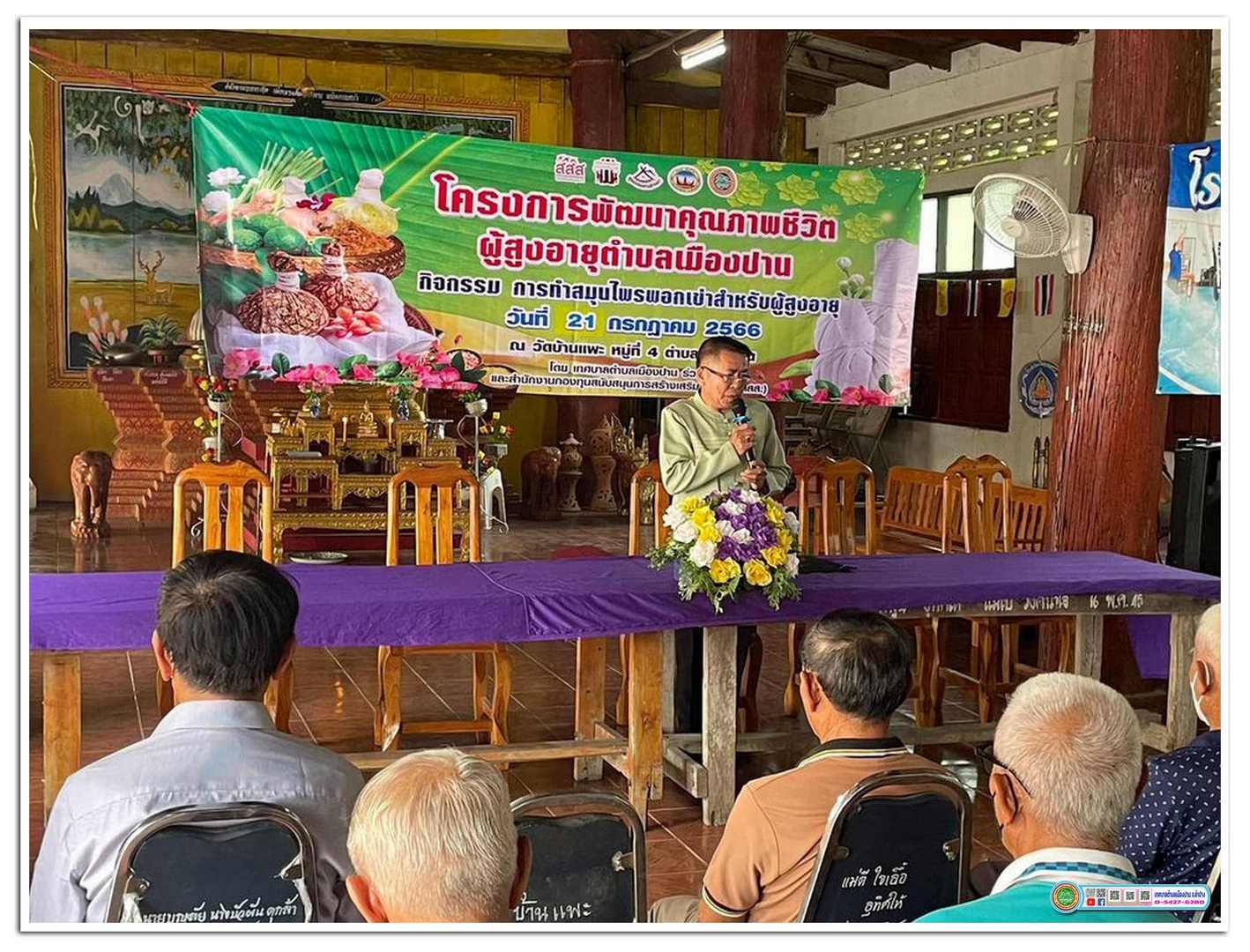 🔹 ในวันที่ 21 กรกฎาคม 2566 นายประสิทธิ์ จำเดิม นายกเทศมนตรีตำบลเมืองปาน กล่าวเปิดกิจกรรมการทำสมุนไพรพอกเข่าสำหรับผู้สูงอายุ ตามโครงการพัฒนาคุณภาพชีวิตผู้สูงอายุตำบลเมืองปาน โดยเทศบาลตำบลเมืองปานร่วมกับสำนักงานกองทุนสนับสนุนการสร้างเสริมสุขภาพ (สสส.) 🦵