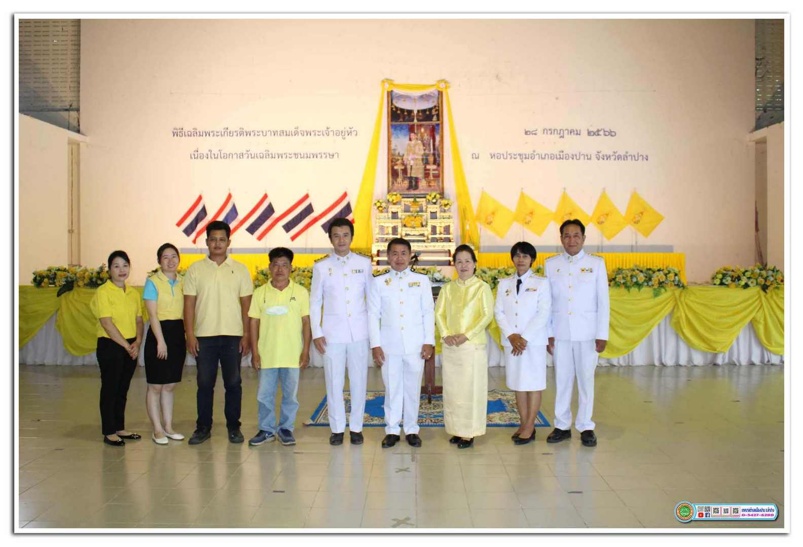 🎗เข้าร่วมพิธีถวายเครื่องราชสักการะและวางพานพุ่ม และพิธีจุดเทียนถวายพระพรชัยมงคลเฉลิมพระเกียรติ พระบาทสมเด็จพระปรเมนทรรามาธิบดีศรีสินทรมหาวชิราลงกรณ พระวชิรเกล้าเจ้าอยู่หัว เนื่องในโอกาสวันเฉลิมพระชนมพรรษา28 กรกฎาคม 2566 ณ หอประชุมอำเภอเมืองปาน จังหวัดลำปาง