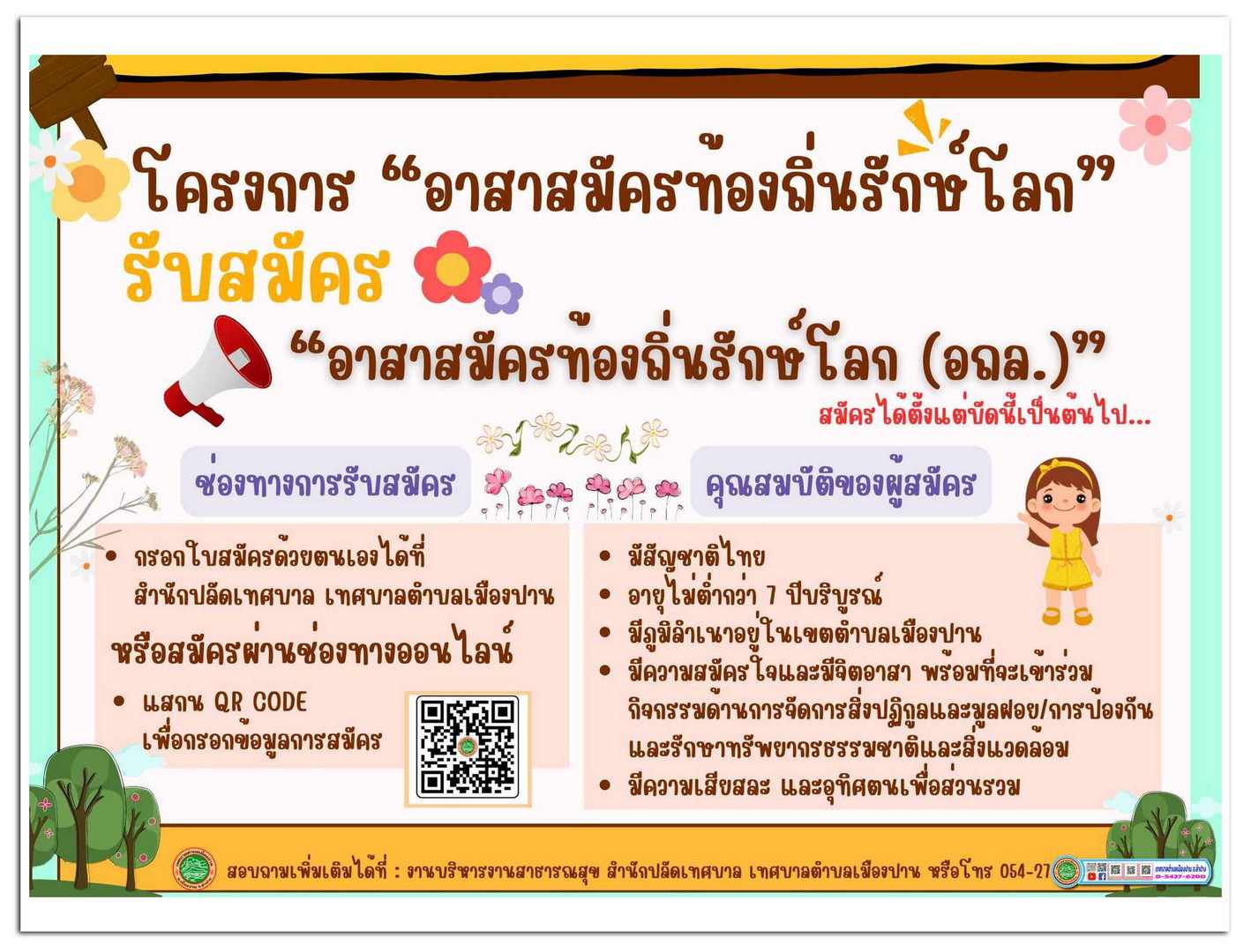 ประชาสัมพันธ์การรับสมัครอาสาสมัครท้องถิ่นรักษ์โลก (อถล.)