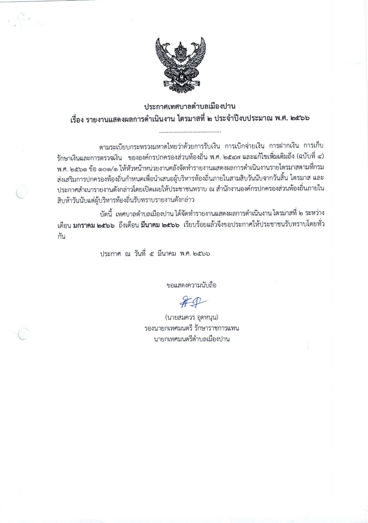 รายงานแสดงผลการดำเนินงานรายไตรมาส ที่ 2 ปีงบประมาณ 2566