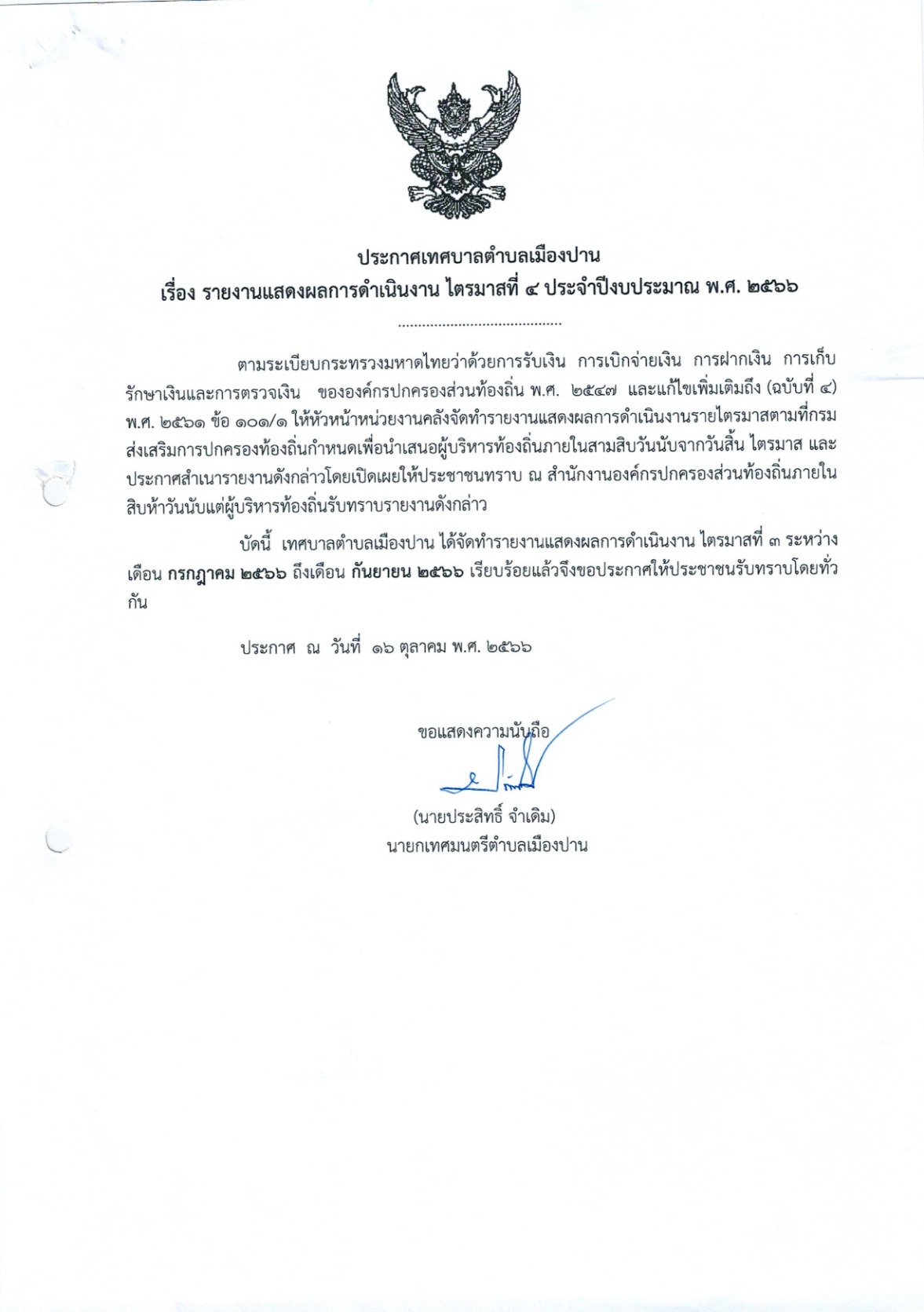 รายงานแสดงผลการดำเนินงานรายไตรมาส ที่ 4 ปีงบประมาณ 2566